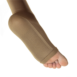Kompressionsstrumpan har en mjuk resår upptill, som sitter mjukt mot benet utan att sitta åt.