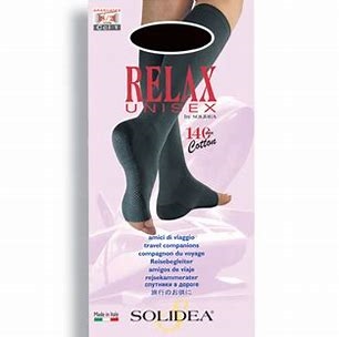 SOLIDEA Knästrumpa för Dam och Herr med normal kompression och öppen tå, som inte är transparant. En klassisk knästrumpa med graderad kompression som ger välbefinnande. Finns i Svart och Hudfärg.