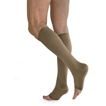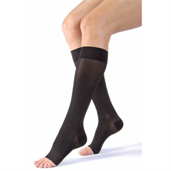 SOLIDEA Knästrumpa med öppen tå för Dam och Herr med hög kompression (CCL2). Strumpan är inte transparant. En klassisk knästrumpa med graderad kompression som ger välbefinnande. Finns i Svart och Hudfärg.